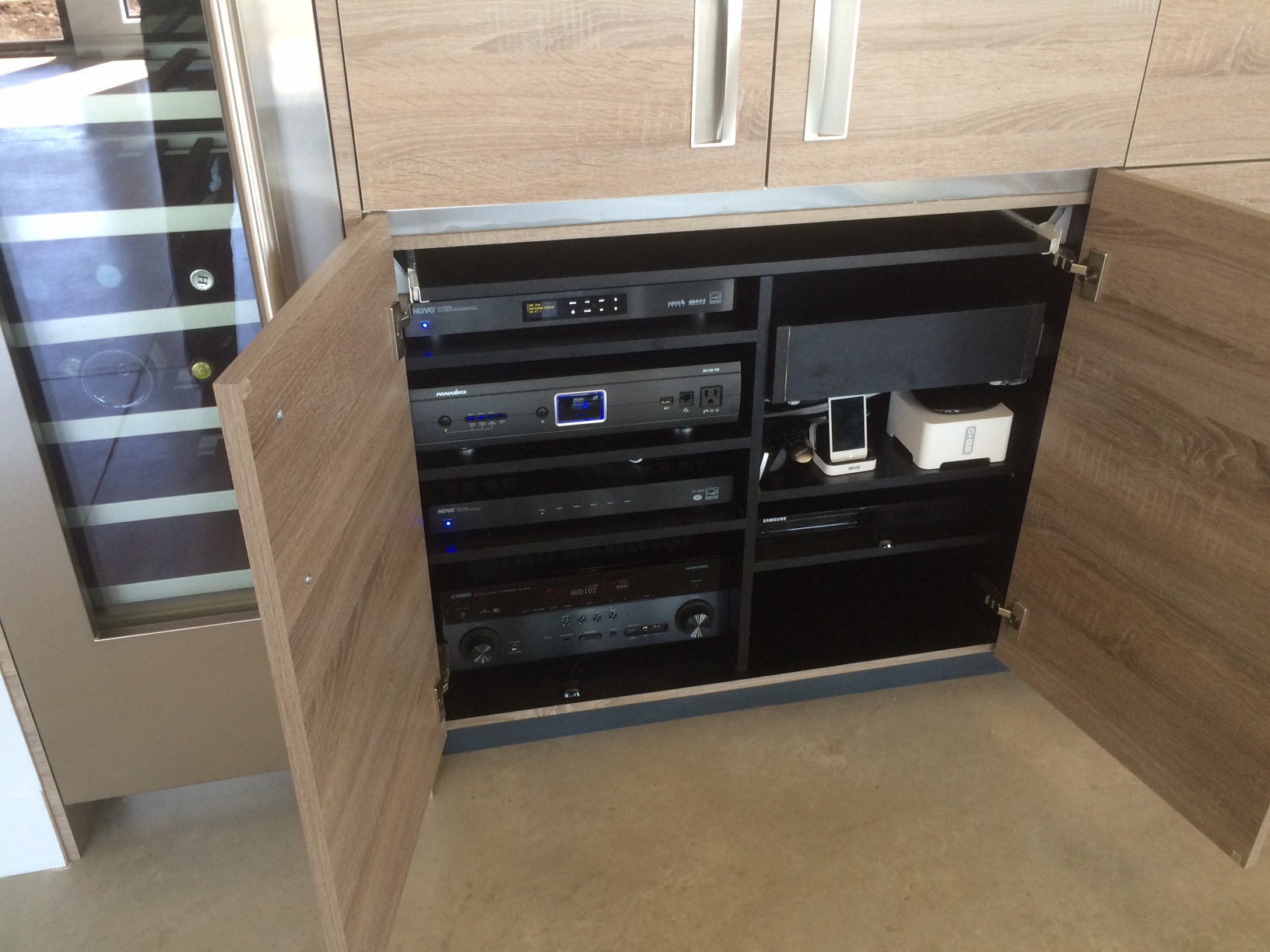 PEC March/15 Samsung UHD, NUVO Essentia, SONOS, Yamaha full Boston in-ceiling. Equipment hidden in custom cabinet. Nice.